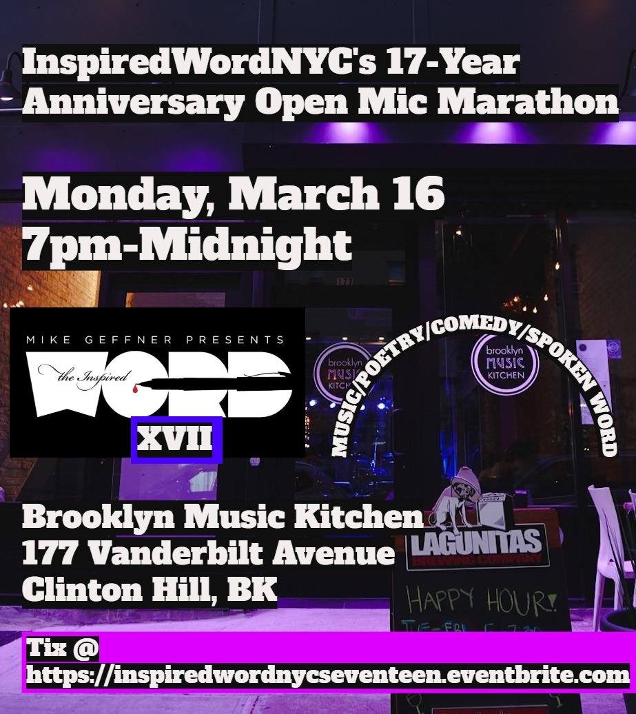 InspiredWordNYC’s 17-Year Anniversary Show Celebration + Marathon Open Mic