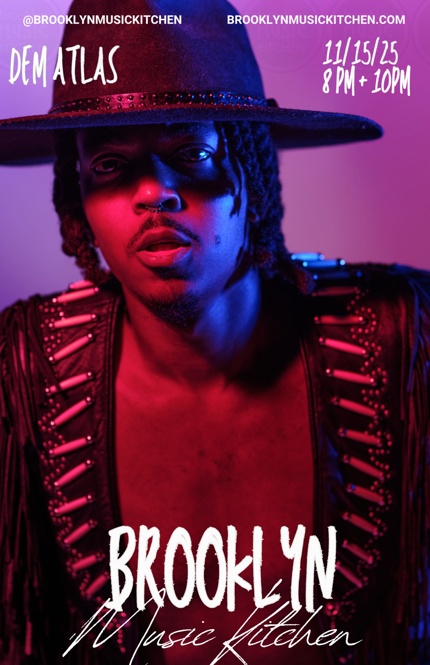 Don't miss Dem Atlas at the Brooklyn Music Kitchen! He will be performing at 10:00 pm on Saturday, November 15th. GET TICKETS HERE Enjoy the BMK 5 star Food and Cocktails Menu. 2 Item Minimum