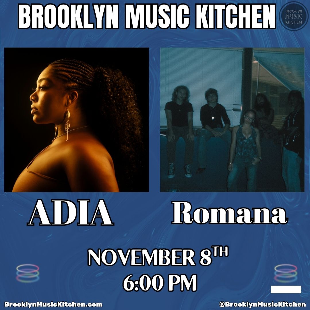 Brooklyn Music Kitchen 177 Vanderbilt Ave, Brooklyn, New York7pm - Romana 8pm - Barisere Tuka 9pm - Stachy 10pm - ADIA GET TICKETS HERE Enjoy the BMK 5 star Food and Cocktails Menu. 2 Item Minimum
