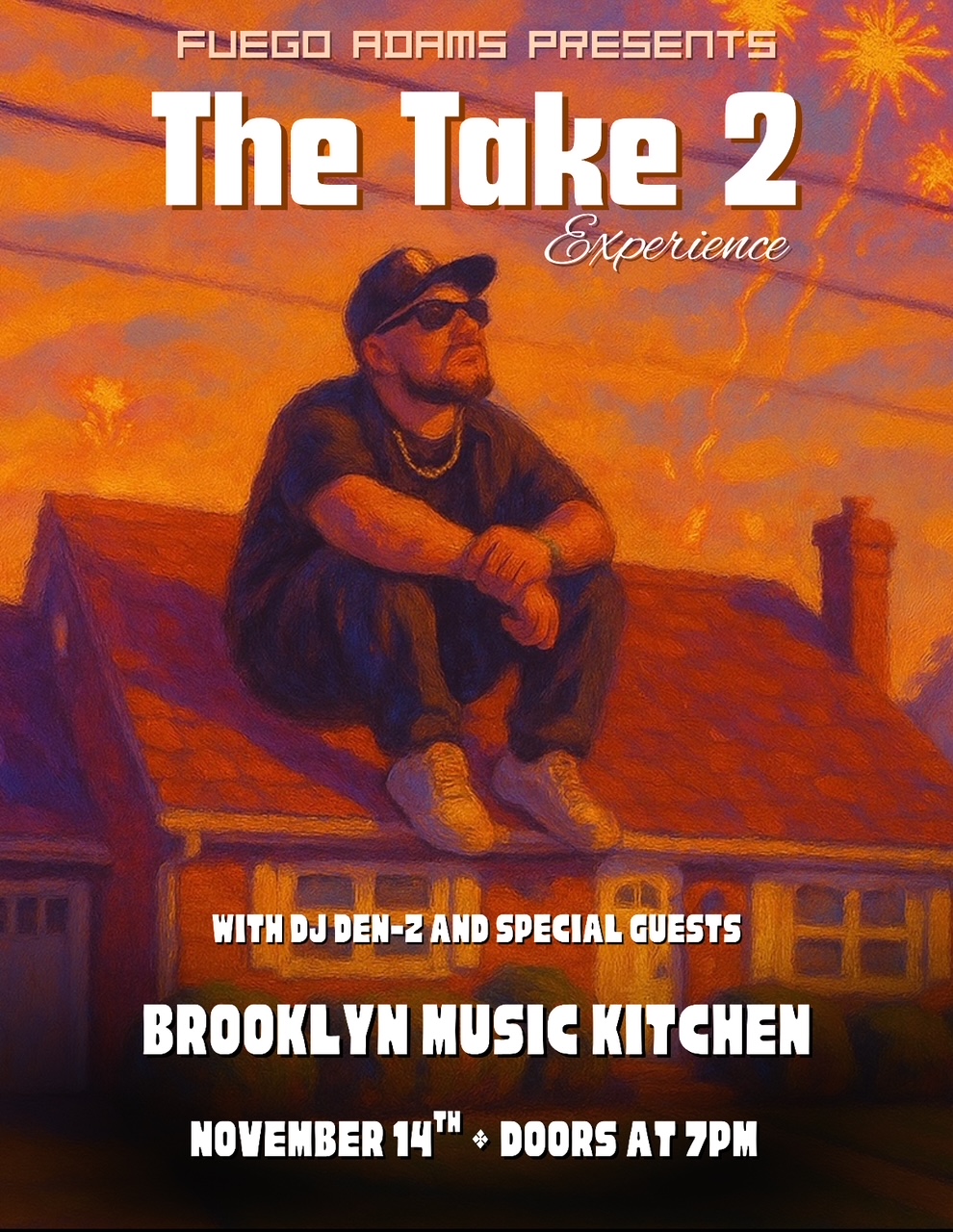 Fuego Adams presents The Take 2 Experience! An album release show! With music by DJ Den-Z and special guests! Enjoy the BMK 5 star Food and Cocktails Menu. GET TICKETS HERE