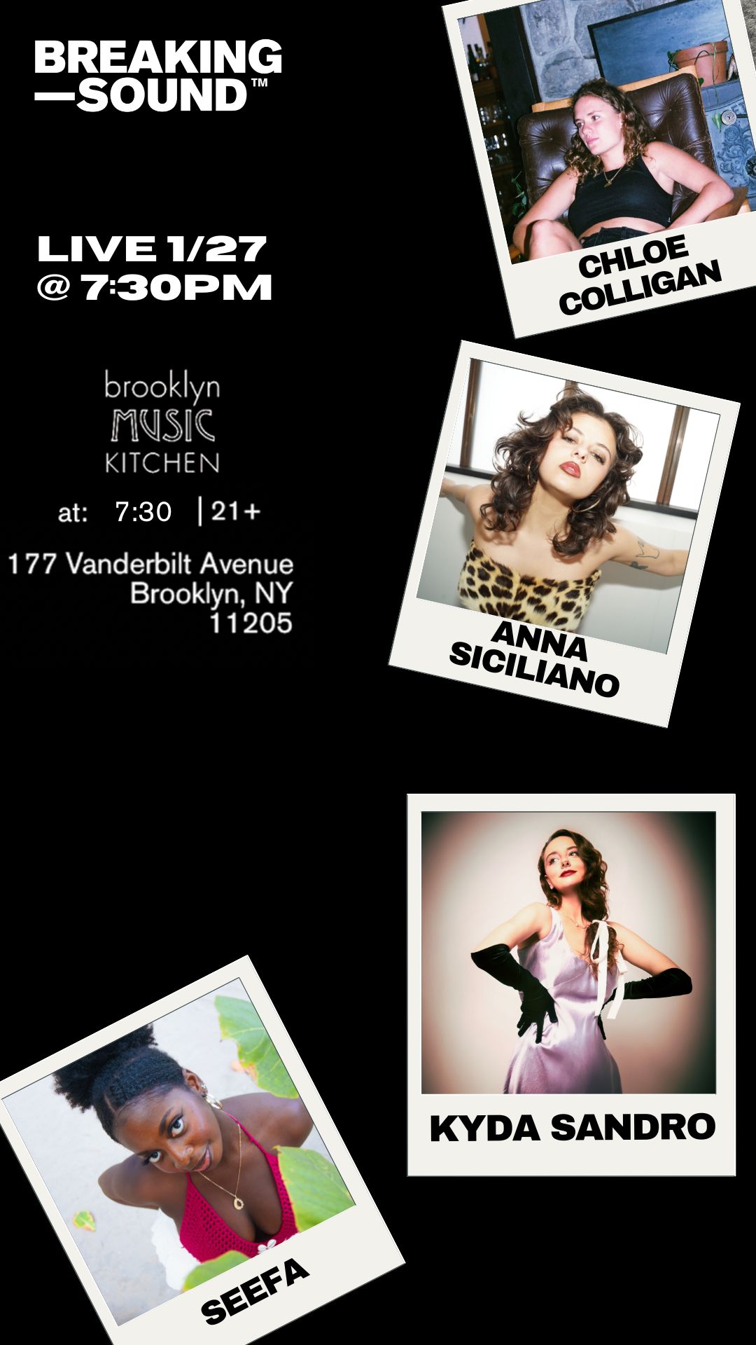 Don't miss the amazing performances Breaking Sound is cooking at the Brooklyn Music Kitchen, showcasing the hottest emerging songwriters in NYC! Doors open at 7:30. Get some great food with... |